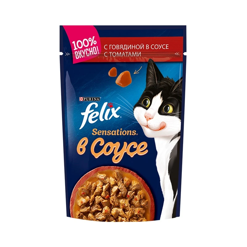 پوچ گربه فلیکس مدل طعم گوشت گوساله با گوجه وزن 85 گرم