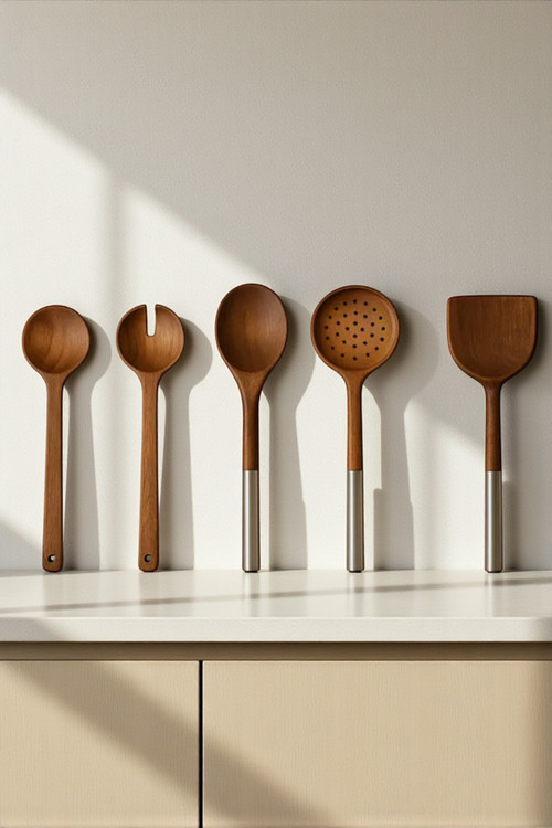 ست ۵ پارچه کفگیر و ملاقه چوبی انتخابی کاربردی و شیک برای هر آشپزخانهای است. این ست از چوب باکیفیت ساخته شده و فاقد مواد مضر (BPA Free) بوده، بنابراین برای پختوپز روزانه کاملاً ایمن است.